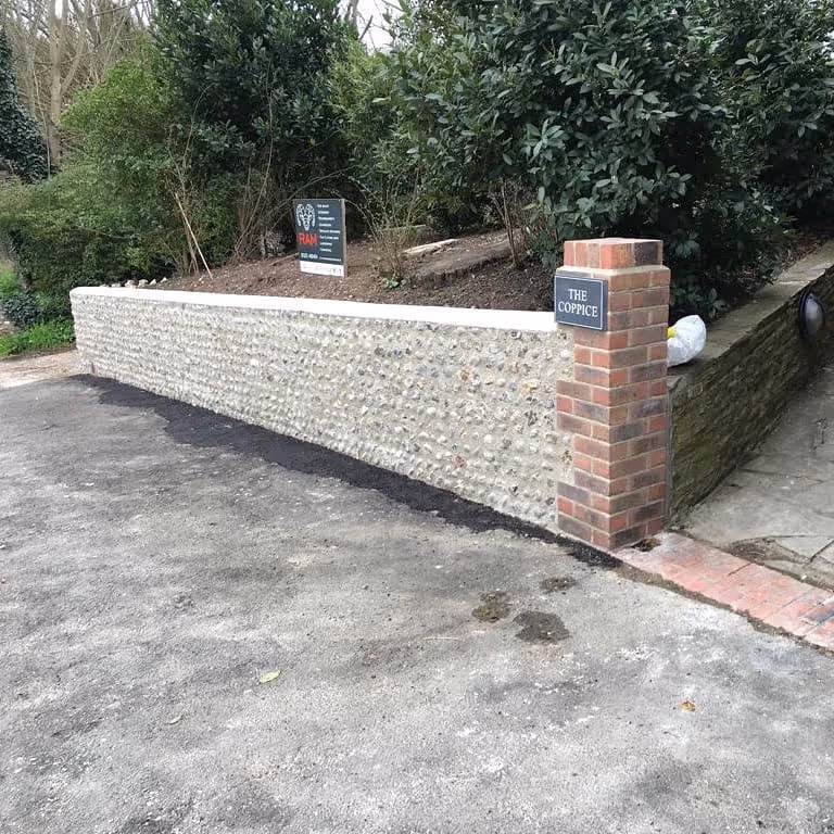 After years of retaining earth and tree roots the existing flint was beyond repair so a full rebuild was needed.#flintwork #flintwall #brickwork #flint #Construction #builder #seaford#brighton #eastsussex #sussex @ Seaford, East Sussex